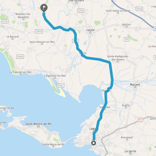 Au rond-point, prendre la 3ème sortie sur D9 (Route de Luçon) et continuer sur 3,3 kilomètres