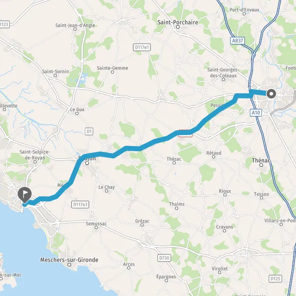 Au rond-point, prendre la 3ème sortie sur Route de Royan et continuer sur 2,8 kilomètres