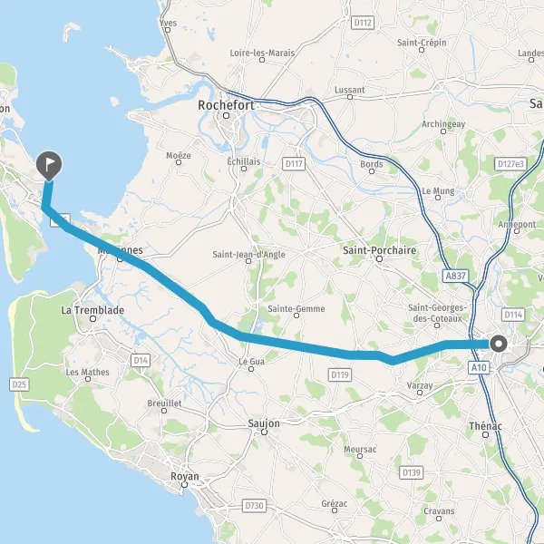 Au rond-point, prendre la 2ème sortie sur D728 (Route de Bourcefranc) et continuer sur 1,7 kilomètre