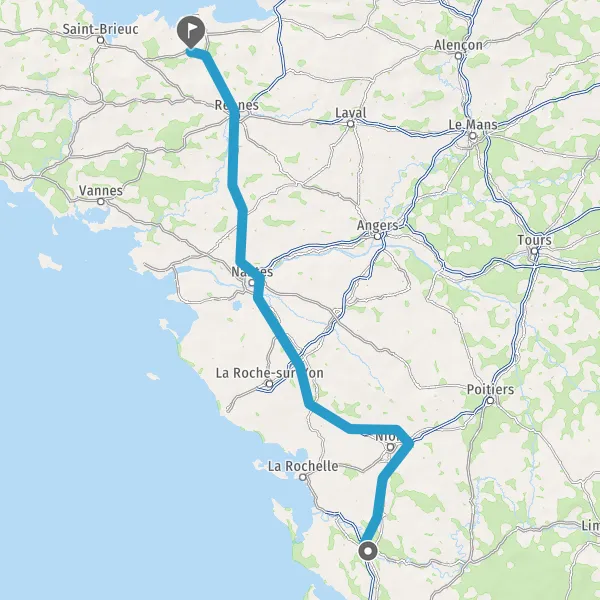 Prendre à droite et rejoindre A83. Continuer sur 150 kilomètres