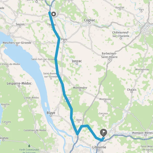 Au rond-point, prendre la 1ère sortie sur D18 (Route de Libourne) et continuer sur 190 mètres