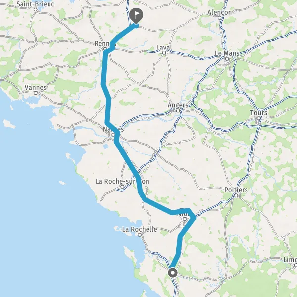 Prendre à droite et rejoindre A83. Continuer sur 150 kilomètres