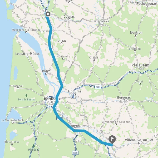 Prendre à gauche et rejoindre A62 E72. Continuer sur 70 kilomètres