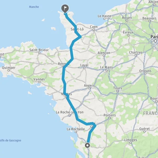 Prendre à droite et rejoindre A83. Continuer sur 150 kilomètres