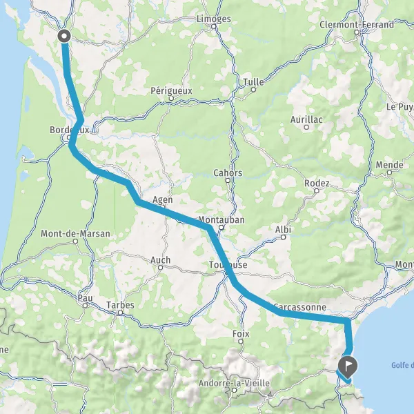 Prendre à gauche et rejoindre A62 E72. Continuer sur 224 kilomètres