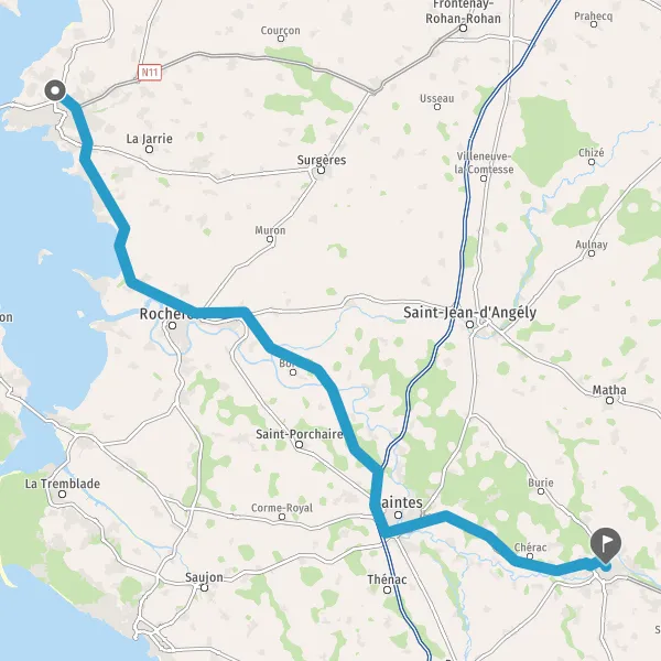 Prendre à droite et rejoindre A837 E602. Continuer sur 1,5 kilomètre