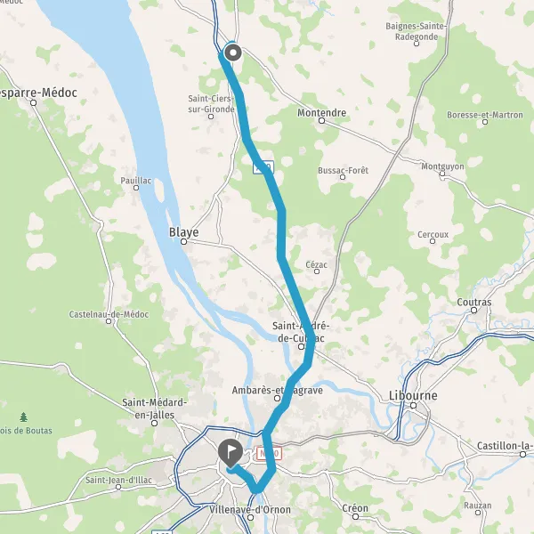 Avec le mode voiture, vous pouvez configurer vos options (type de véhicule, autoroute ou non, péage ou non, distance la plus courte), tout en ayant accès aux infos de circulation grâce à notre service d'info-trafic en temps réel. Ainsi faites des économies sur le coût ou la durée de votre voyage, en trouvant le trajet Mirambeau Bordeaux adapté à vos besoins.