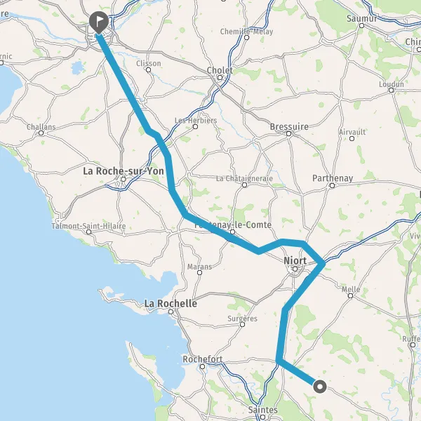 Prendre à droite et rejoindre A83. Continuer sur 150 kilomètres