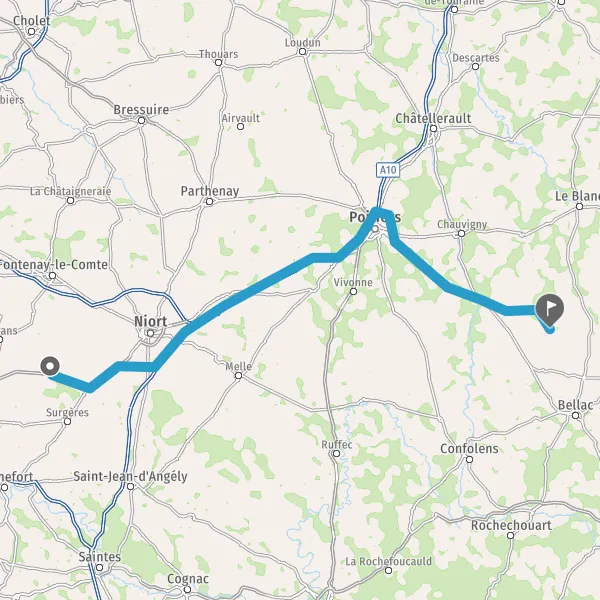 Tourner à droite sur D54 (Route de Lathus) et continuer sur 6,2 kilomètres