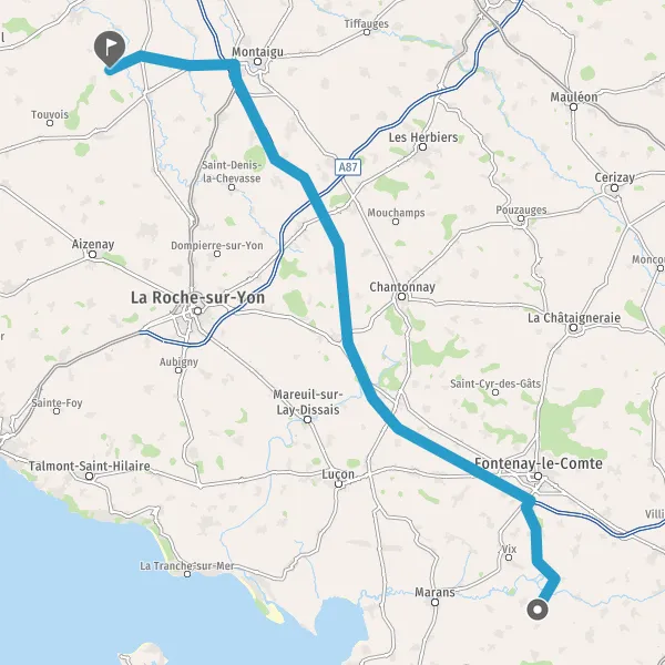 Prendre à droite et rejoindre A83. Continuer sur 77 kilomètres