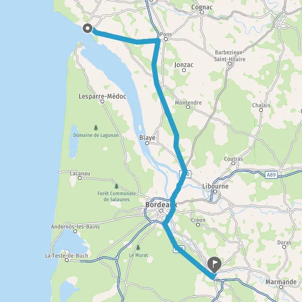 Au rond-point, prendre la 2ème sortie sur D732 (Route de Bordeaux) et continuer sur 10 kilomètres