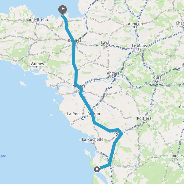 Prendre à droite et rejoindre A83. Continuer sur 150 kilomètres