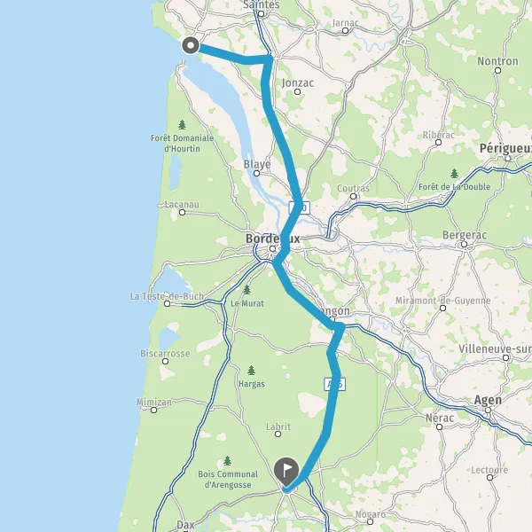 Au rond-point, prendre la 2ème sortie sur D732 (Route de Bordeaux) et continuer sur 10 kilomètres