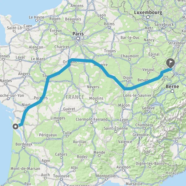 Prendre à droite et rejoindre A36. Continuer sur 221 kilomètres