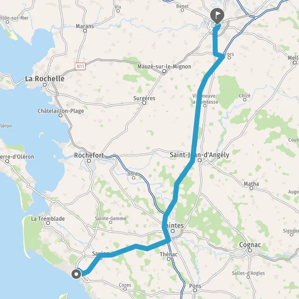 Au rond-point, prendre la 2ème sortie sur N150 (Route de Royan) et continuer sur 4,6 kilomètres