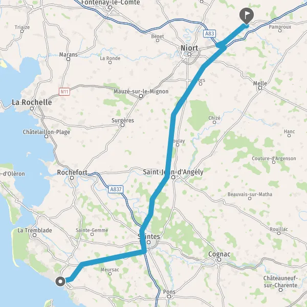 Prendre à droite et rejoindre A83. Continuer sur 3,6 kilomètres