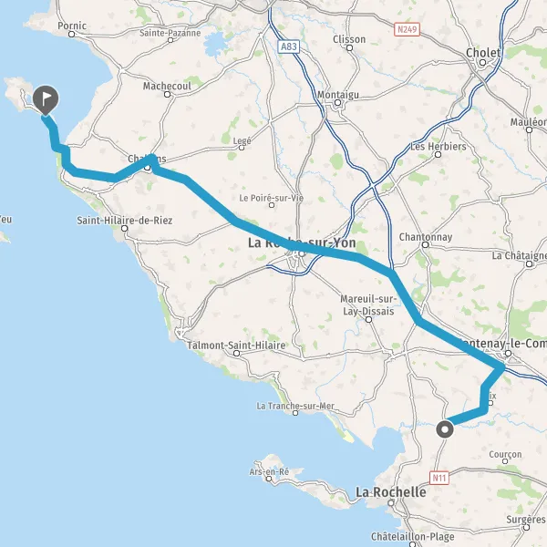 Au rond-point, prendre la 2ème sortie sur D948 (Route de La Roche-sur-Yon) et continuer sur 4,3 kilomètres