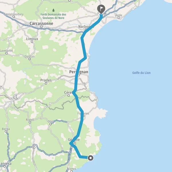 Continuer A9 E15 sur 113 kilomètres