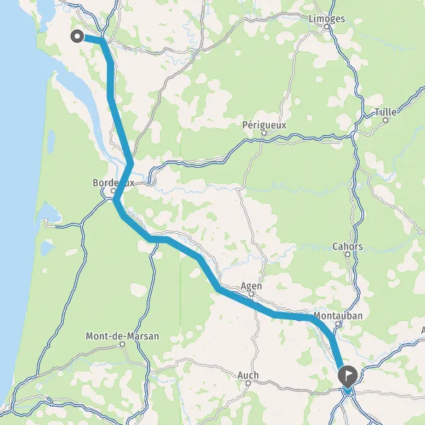 Prendre à gauche et rejoindre A62 E72. Continuer sur 224 kilomètres
