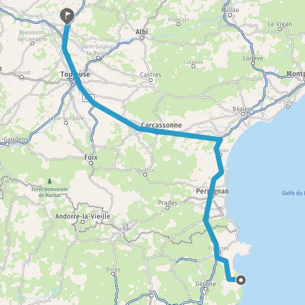 Prendre à droite et rejoindre A61 E9. Continuer sur 15 kilomètres
