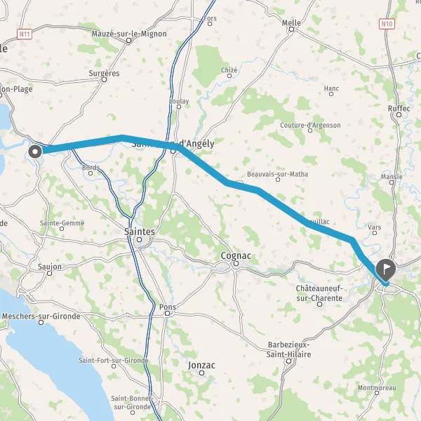 Prendre à droite et rejoindre Avenue de Cognac. Continuer sur 650 mètres