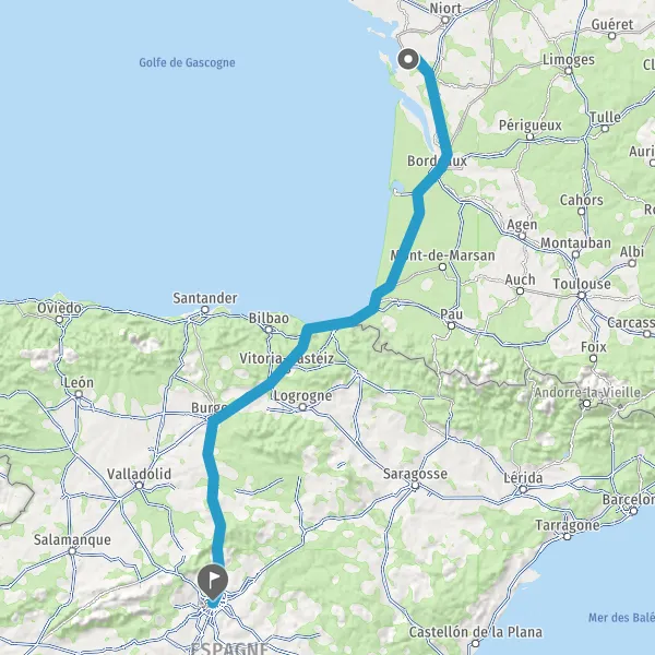 Prendre à droite et rejoindre A63. Continuer sur 205 kilomètres