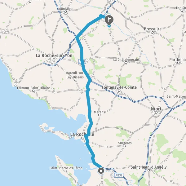 Au rond-point, prendre la 2ème sortie sur Route de la Rochelle et continuer sur 1 kilomètre