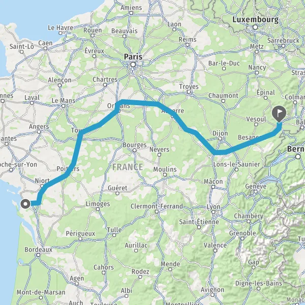 Prendre à droite et rejoindre A36. Continuer sur 180 kilomètres