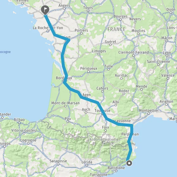 Prendre à droite et rejoindre A83. Continuer sur 150 kilomètres