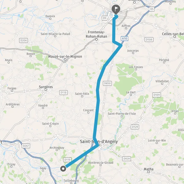 Au rond-point, prendre la 3ème sortie sur D18 (Route de Saint-Jean-d'Angély) et continuer sur 6,8 kilomètres