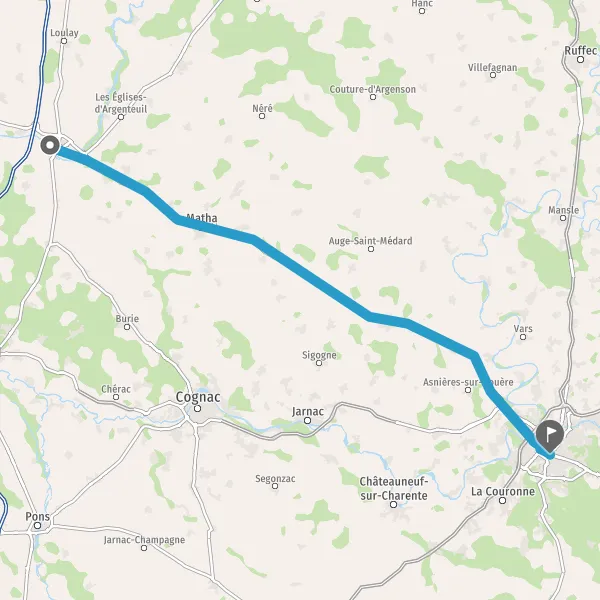 Au rond-point, prendre la 3ème sortie sur D939 (Route d'Angoulême) et continuer sur 22 kilomètres
