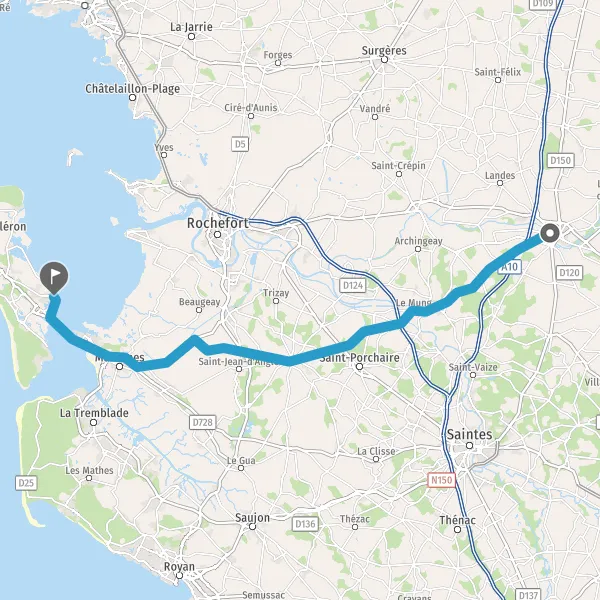 Au rond-point, prendre la 2ème sortie sur D728 (Route de Bourcefranc-le-Chapus) et continuer sur 550 mètres