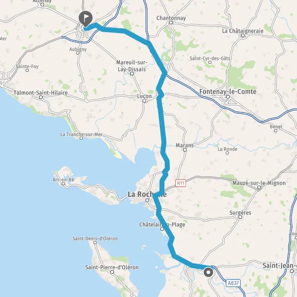 Prendre à droite et rejoindre A837 E602. Continuer sur 7,8 kilomètres