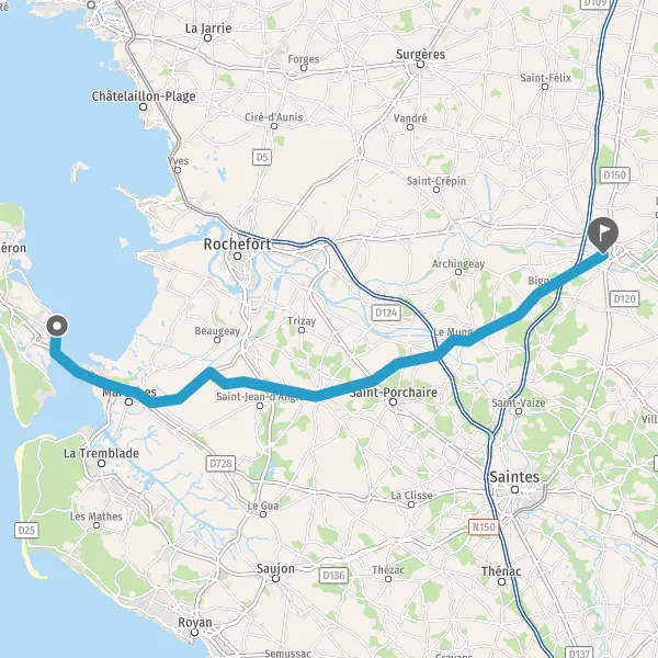 Au rond-point, prendre la 2ème sortie sur D728 (Route de Bourcefranc-le-Chapus) et continuer sur 900 mètres