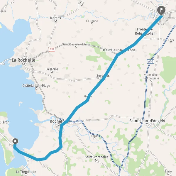 Au rond-point, prendre la 2ème sortie sur D611 (Route de La Rochelle) et continuer sur 850 mètres