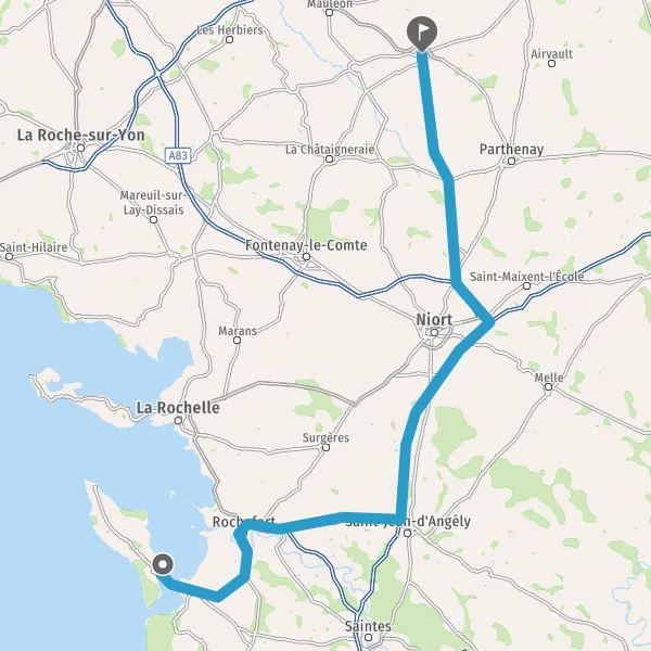 Tourner légèrement à droite sur D116 (Route de Fontenay-le-Comte) et continuer sur 8,2 kilomètres
