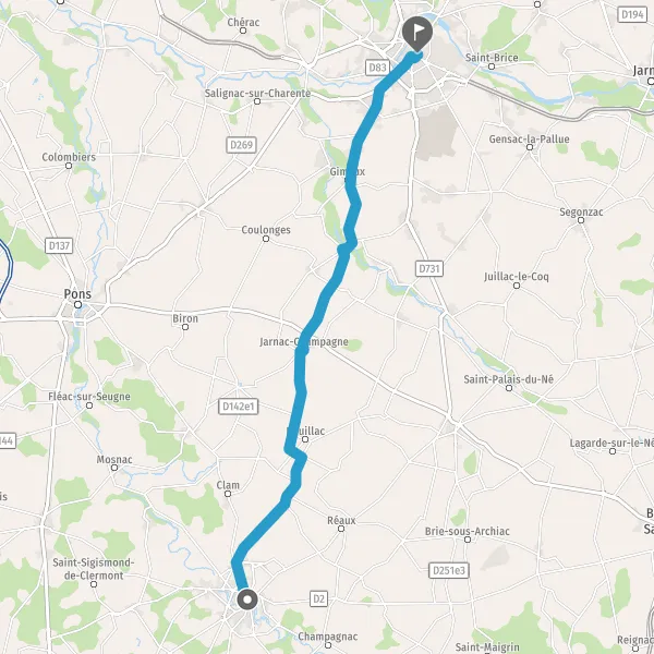 Au rond-point, prendre la 2ème sortie sur Rue de Pons et continuer sur 55 mètres