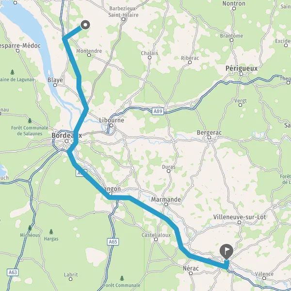 Prendre à gauche et rejoindre A62 E72. Continuer sur 123 kilomètres