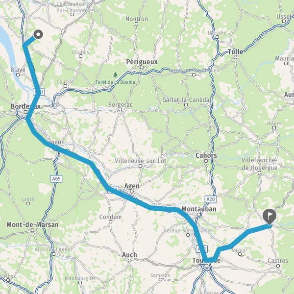Prendre à gauche et rejoindre A62 E72. Continuer sur 224 kilomètres