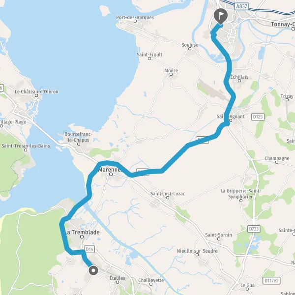 Au rond-point, prendre la 2ème sortie sur D728 (Route de Bourcefranc-le-Chapus) et continuer sur 900 mètres