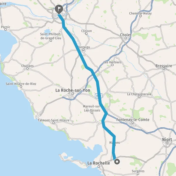 Au rond-point, prendre la 2ème sortie sur E3 (Route de La Rochelle) et continuer sur 2,7 kilomètres