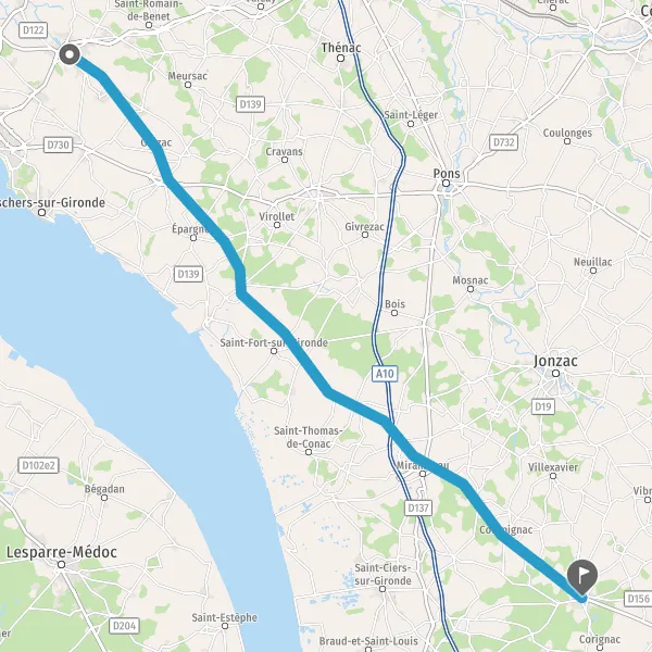 Tourner légèrement à droite sur D17 (Route de Cozes) et continuer sur 9,3 kilomètres