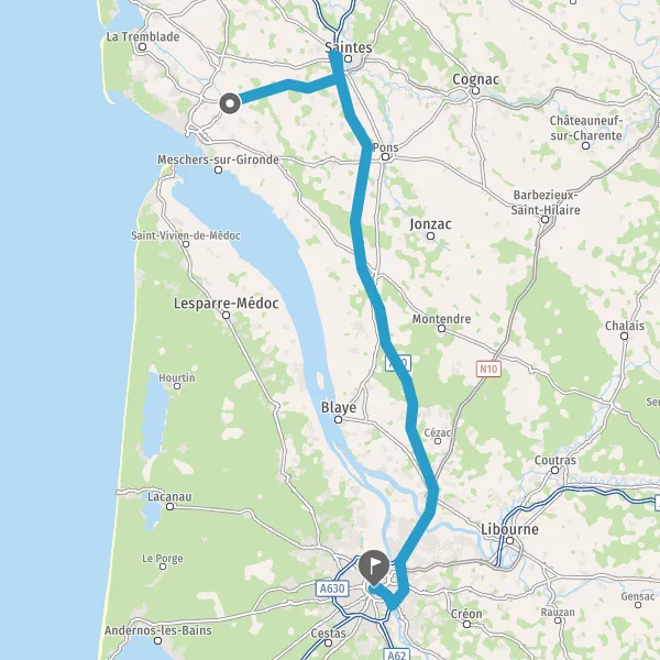 Avec le mode voiture, vous pouvez configurer vos options (type de véhicule, autoroute ou non, péage ou non, distance la plus courte), tout en ayant accès aux infos de circulation grâce à notre service d'info-trafic en temps réel. Ainsi faites des économies sur le coût ou la durée de votre voyage, en trouvant le trajet Saujon Bordeaux adapté à vos besoins.