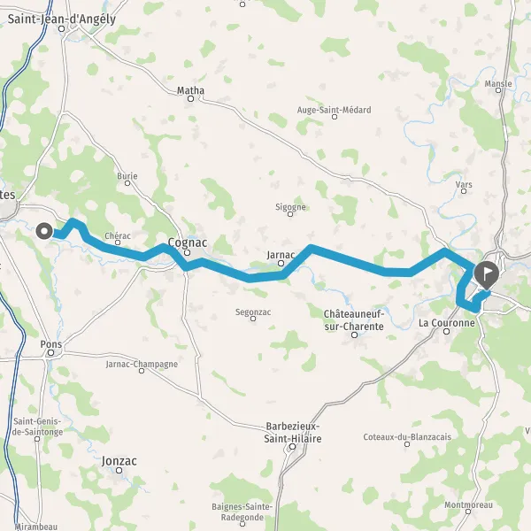 Au rond-point, prendre la 1ère sortie sur Rue de Cognac et continuer sur 1 kilomètre
