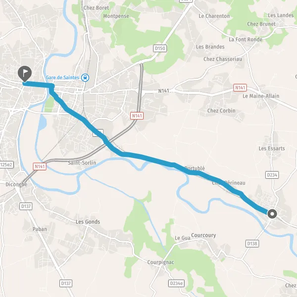 | Distance en voiture | 7,5 km à 8,3 km |