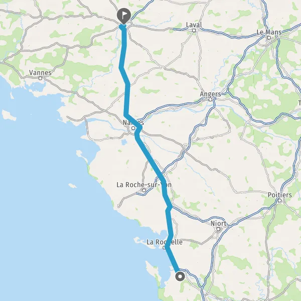 Au rond-point, prendre la 3ème sortie sur Route de la Rochelle et continuer sur 1,1 kilomètre