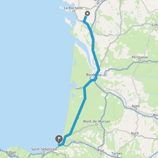 Prendre à droite et rejoindre A63. Continuer sur 183 kilomètres