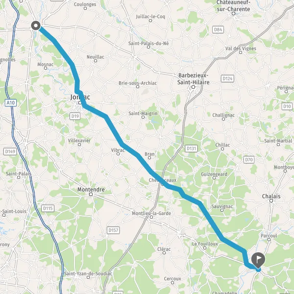 Continuer D142 D157 (Route de Chalais) sur 450 mètres