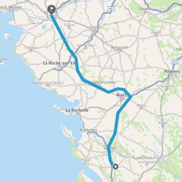 Prendre à droite et rejoindre A83. Continuer sur 150 kilomètres