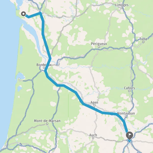 Prendre à gauche et rejoindre A62 E72. Continuer sur 224 kilomètres